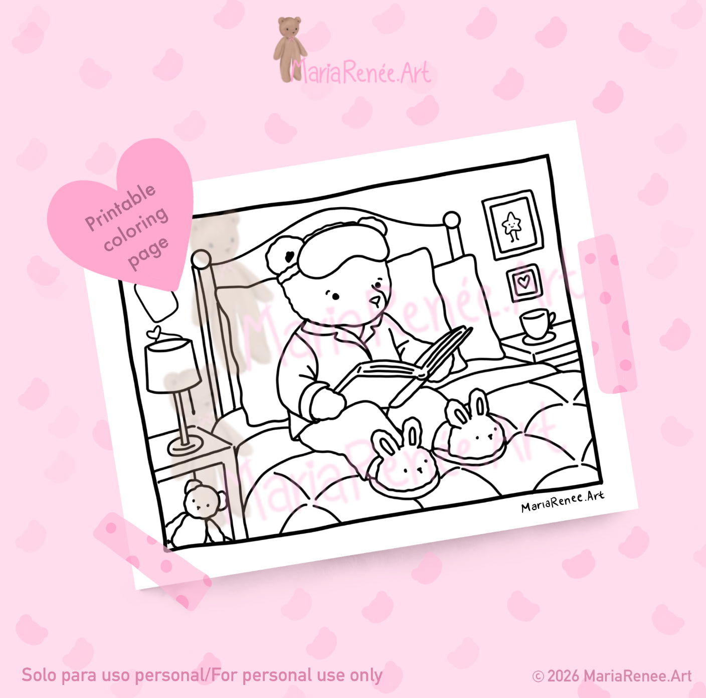 Hoja para colorear de osito 💕