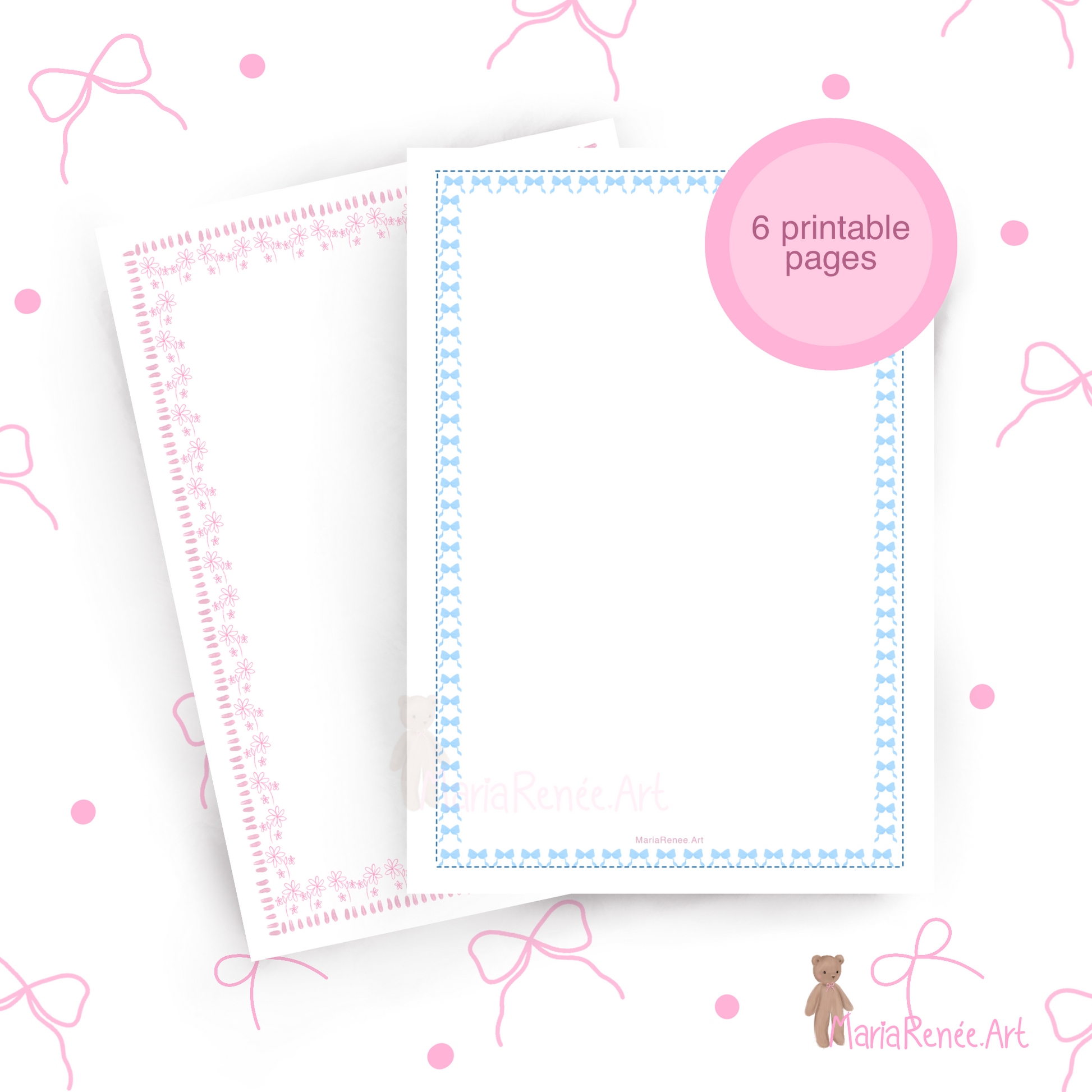 Un archivo ZIP sin fondo con 6 hojas decoradas para que puedas imprimir desde casa o usar en aplicaciones como GoodNotes/Procreate ✨